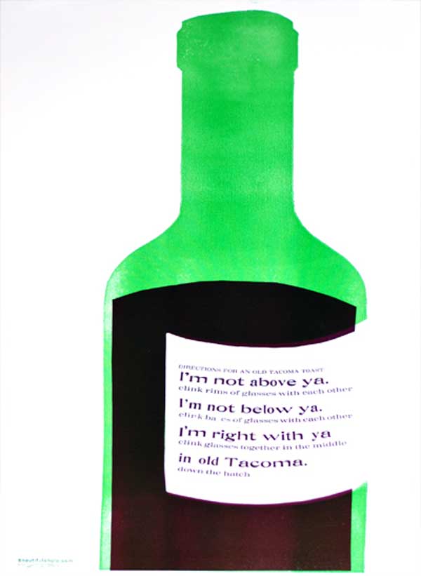 What better way to celebrate than with a drink with a friend. Beautiful Angle captures this humble experience with their “Tacoma Toast” commemorative poster. Originally as a package gift for those who attended their 10 year anniversary party at Fulcrum Gallery. We are offering up the remaining posters for sale to the public. 60% of all proceeds go to benefit Beautiful Angle