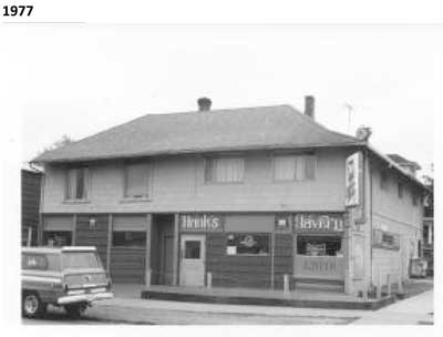 The building is apparently actually two buildings, the first originally constructed in 1894, with the two structures joined by 1908. One of the few commercial structures in the North Slope Historic District, the upstairs housed apartments, and the first floor has been a general store and tavern. It has been Hank’s, aka the Corner Bar, since 1969.