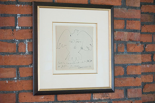 The original Picasso line drawing, “La Visage de la Paix” (The Face of Peace), which has had quite an interesting international journey, was gifted to UWT by local peace activist the Reverend Bill “Father Bix” Bichsel. The past journeys of the sketch include, of course, being created by the famous Spanish artist, and apparently some time spent in Japan, before travelling back to Tacoma with Bichsel and the other members of his 2009 group who, according to a story in today’s TNT, travelled to Japan to “express our sorrow for the bombings of Hiroshima and Nagasaki.” The Tacoma reconciliation group met and exchanged gifts with the Japanese Peace Committee. Apparently this drawing was one of the gifts from Japan. Quite a gesture.