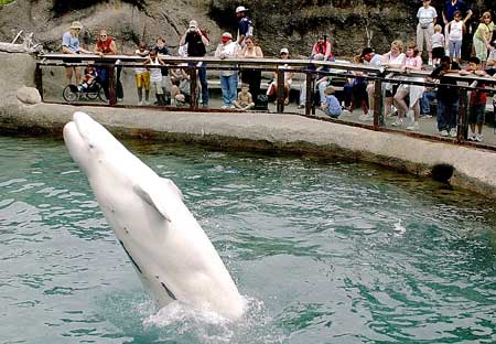 They’re replacing the whales with sea lions, fresh from being captured at Bonneville Dam for eating too many salmon at the fish ladder entrance. We’re replacing animals that have a hard time surviving in captivity with some wild ones that have adapted “too well” to human-caused changes to the natural environment. Ah, the modern world…