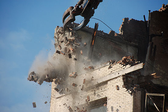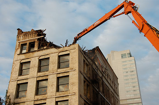 The Luzon demolition is well under way. We have three hours of video and four hundred photos. Our hope is to stitch all these images into a four to five minute video. Yet, we are just two sets of eyes (Dad’s here working for Exit133 this week). Did you take any photos? How about video? We’d like to gather as many images as possible from as many people as we can. iPhone video. Cameraphone shots. High Def. Whatever you have. We’ll take the combined effort to create the complete montage documenting today’s events.
