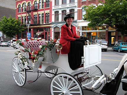These special Tacoma rides will run every Thursday night through summer (except the last Thursdays of June and July). This means you could try it out TONIGHT! The price for approximately thirty minutes is $50. The carriages fit four people. Maybe more with small kiddos. Less expensive than carriage rides in other cities. More expensive than walking. Personally, we see this as a decent way to get from the convention center or dinner at Pacific Grill to Matador, Vin Grotto, Paddy Coynes, or Meconi’s for a nightcap. How about that for a designated driver? Go for it.