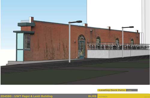 With work under way in earnest on the Prairie Line Trail, which runs right behind the the Pagni & Lenti (PAL) building, the university is looking to improve connectivity and activity levels in the area. The UWT Station section of the trail is scheduled for completion early this fall. The PAL project is still early in the planning process, working on permit documents and project scope, but exterior changes including the deck will ultimately need LPC approval.