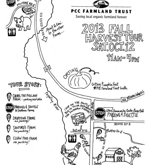 If you're feeling inspired to make a day of it, consider checking out the PCC Farmland Trust's Fall Harvest Tour. The Trust's mission of preserving organic farmland forever has had a couple of successes lately with the preservation of Sturgeon Farm and the Reise Farm, which are now home to Dropstone Farms and Cheryl the Pig Lady and Friends, respectively.
