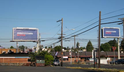 The emails started coming in yesterday around mid-day. What are all the “Constitutions Matters” supposed to mean? We heard that they were ‘all over’ South 38th Street. We had no idea that when they said all over… they meant it. From the corner of South 38th and Tacoma Avenue, we counted seven Constitution Matters billboards. We saw two on Pacific Avenue between downtown and 38th Street. We saw four on Sprague. Somebody’s trying to make a point…