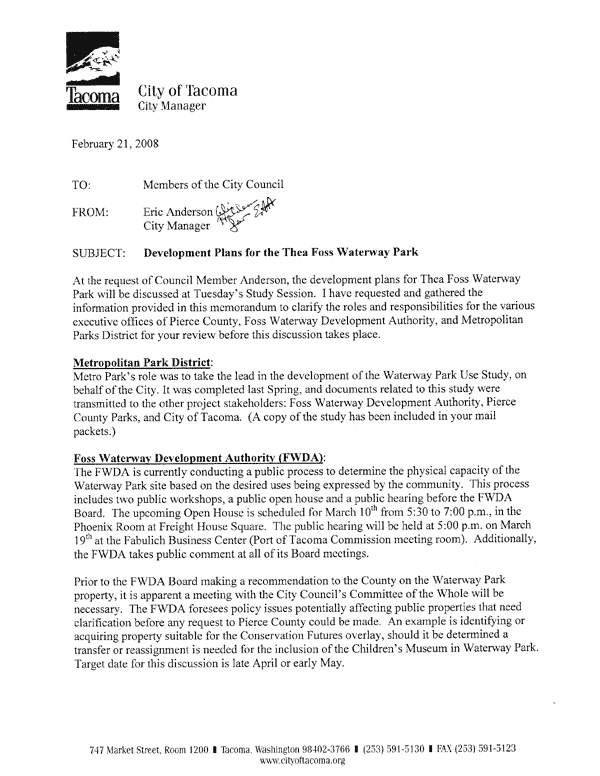 Erik Anderson’s 2/21 Memo to Council: