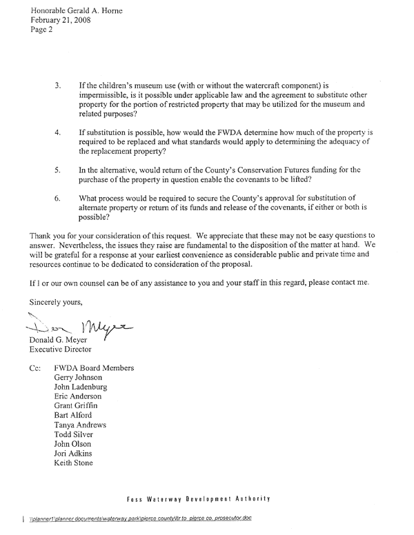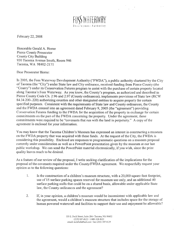 Peter Callaghan’s column today is spot on. He could have said more, as this issue is complex. Simply on the immediate legal uncertainties raised by the Museum’s proposal, he could also have explored the legal definition of “covenant shall run with the land.” Or the due process concerns of those who applied for Conservation Futures funds and who did not score as high as the Waterway Park proposal but who might have if the Waterway proposal had included a museum building. He could ask why the Children’s Museum is the only nonprofit in Tacoma who is given the opportunity to propose using the Park for their purposes?