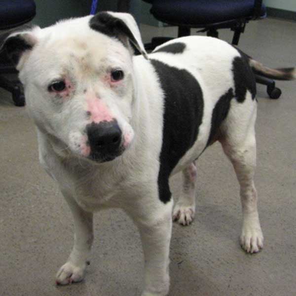 Belle is a 6 year old spayed female with a heart of gold. She is an American Bulldog mix and sweet as can be. Belle has been through a lot in her life. She has a skin condition and is hypothyroid. Her skin can cause her occasional discomfort and will need to be monitored/treated by a vet. Belle is a trooper and doesn’t let anything get her down! Bell is house-trained and already knows how to ‘sit’. She walks very well on a leash and loves to spend as much time, and interact with as many people, as possible. Come meet this ‘beauty’ today!