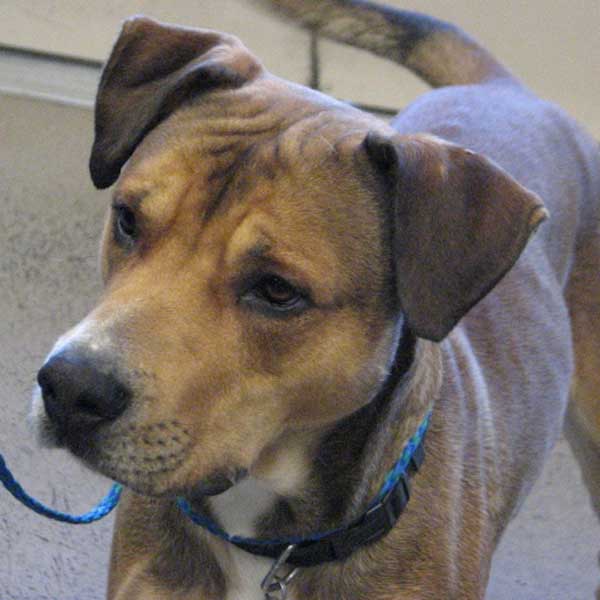 This week’s Dog of the Week, Buster, is a bouncing ball of energy! At only 3 years old, this Rottweiler/Boxer mix can play for hours. He’s a neutered, medium sized dog who thinks he’s a lap dog. When not fetching balls, he would love to spend time in your lap watching a movie or just snuggling on the couch. Buster came to the shelter when his owner had to move. He’s a bit too interested in cats to do well in a home with kitties or other small animals, but he might do really well in a home with another dog to play with. Perhaps your family might be the perfect ’pack’ for Buster? Come meet him today!