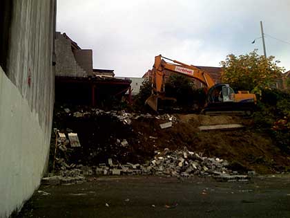 It may be of wee significance to some, but the small addition on the north side of the Elks Building is coming off today.
