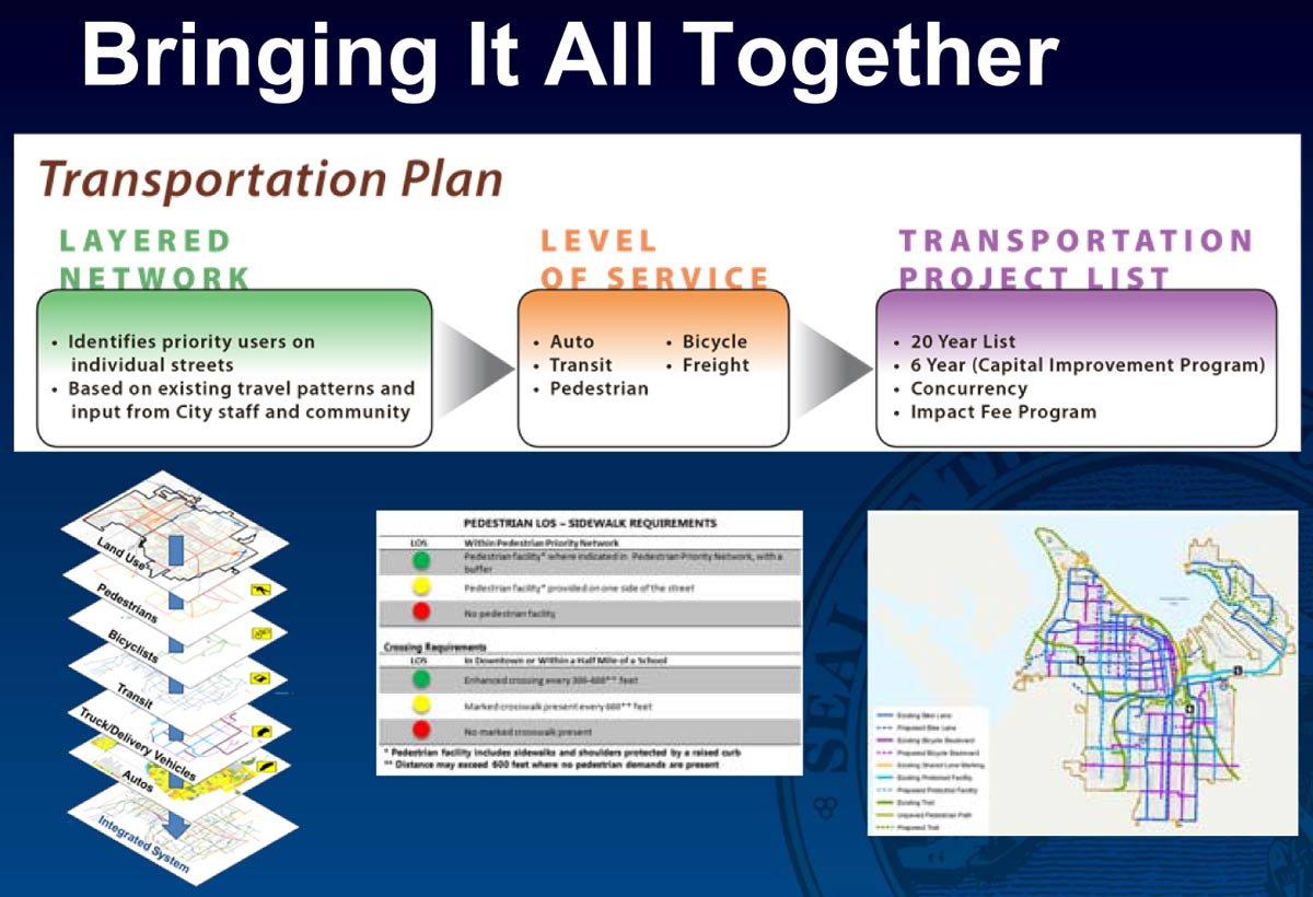 The creation of Tacoma's TMP is no small task, as it will involve bringing together all elements of transportation in the City to form a coherent vision to guide transportation planning and prioritize investment for decades to come in Tacoma.