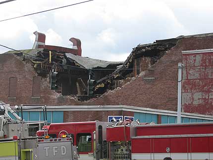 The Eagles Building at 13th and Fawcett has ‘spontaneously collapsed.’ I arrived at the scene a little after 10:30 am. The fire trucks were on-site and the roads were being blocked. Anybody in the market for a significant fixer?