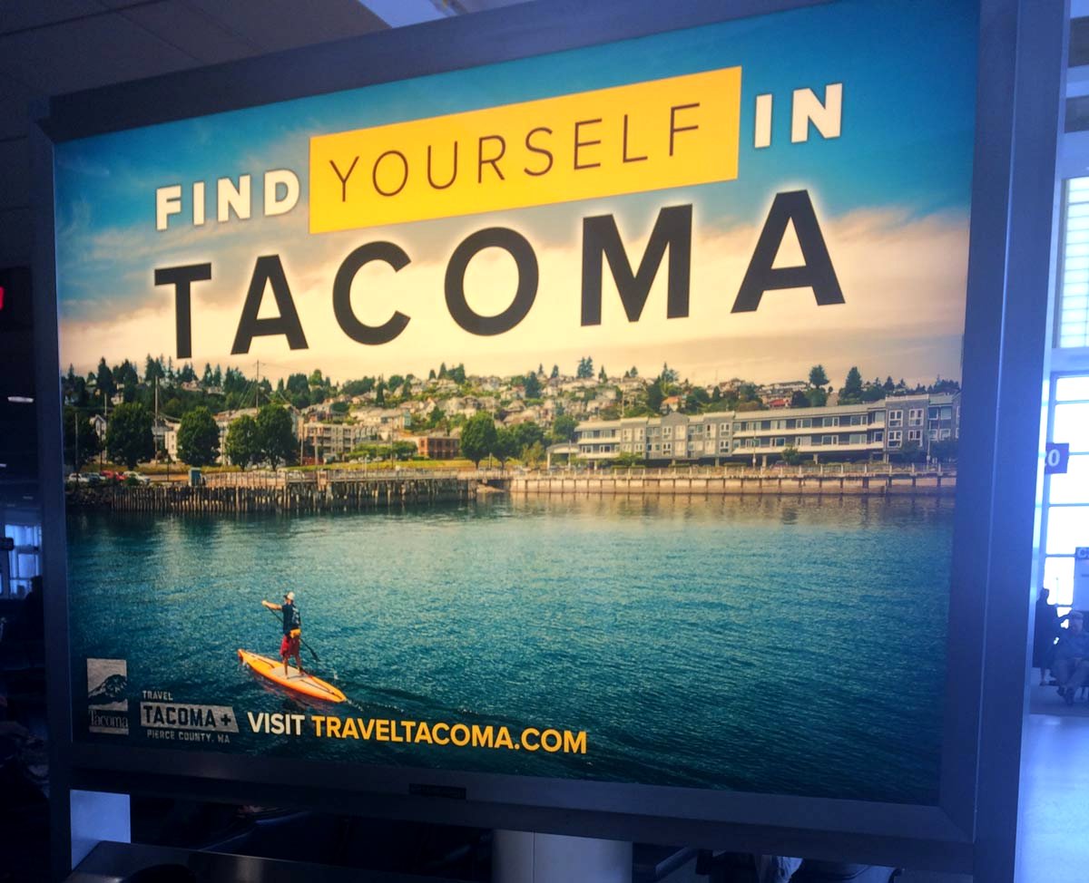 This week a reader spotted a bit of a different take on selling the City of Destiny. This one is from Travel Tacoma, spotted at the Sea-Tac Airport. It's