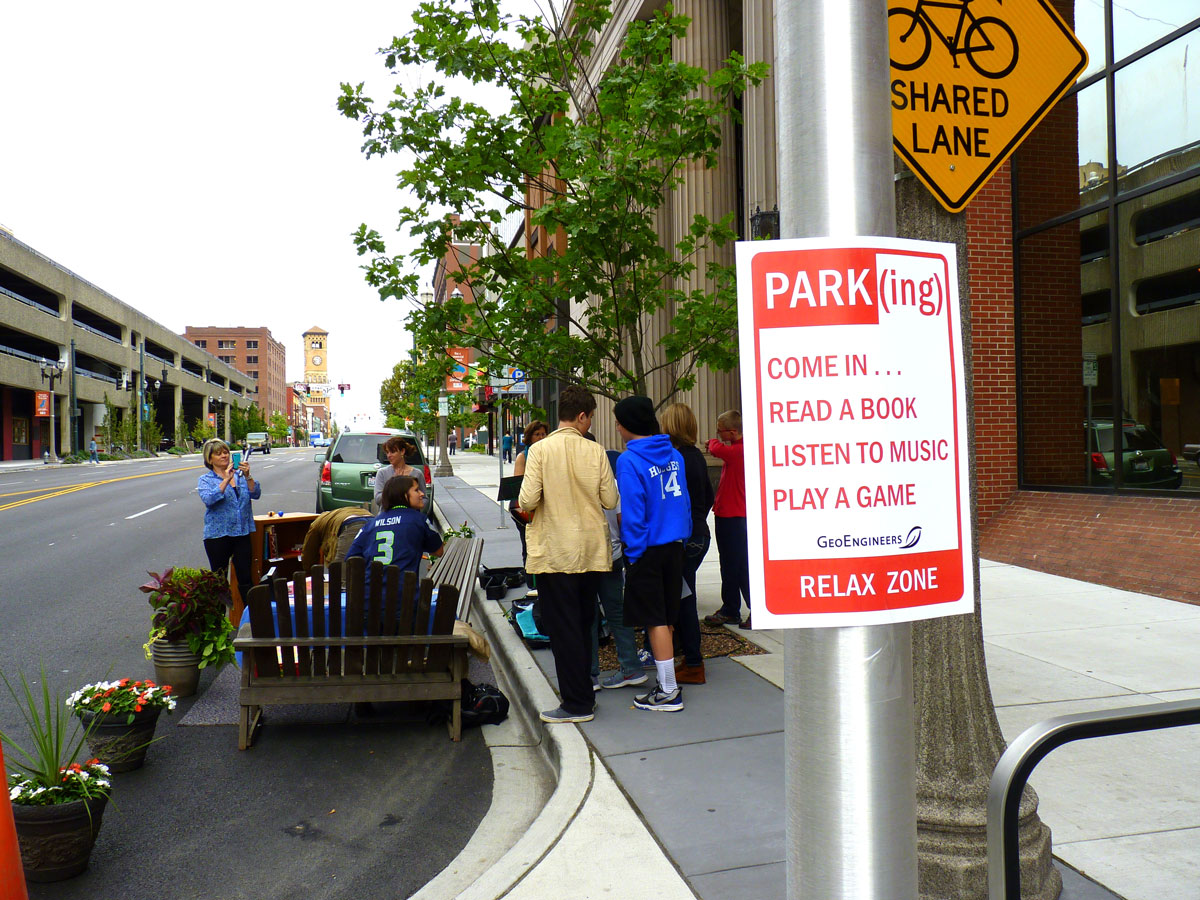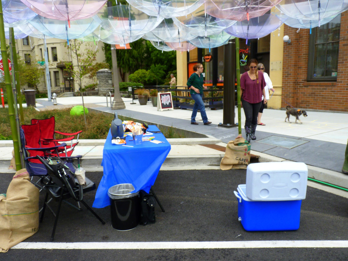 Park(ing) Day 2014 is going on right now. A couple dozen parking spots around downtown Tacoma have been transformed into activated parklets for your enjoyment, so if you have a couple minutes, head out and find one (or a bunch) near you.