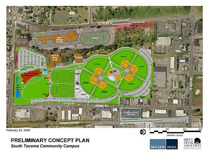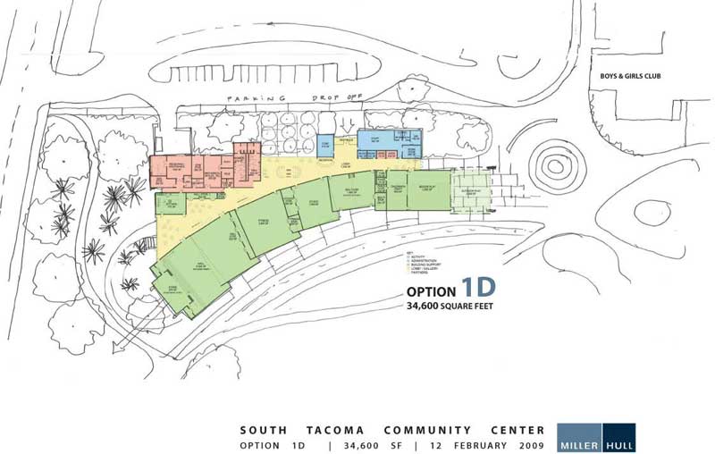 With the City of Tacoma working so hard to create urban mixed-use centers, why is this preliminary site plan for the community center laid out like another sub-urban development with buildings setback from the street? South Tacoma does not need to look like Federal Way (heck, now even Federal Way doesn’t want to look like Federal Way). It is possible to get an urban solution to go with the Sound Transit Sounder Station to the East?