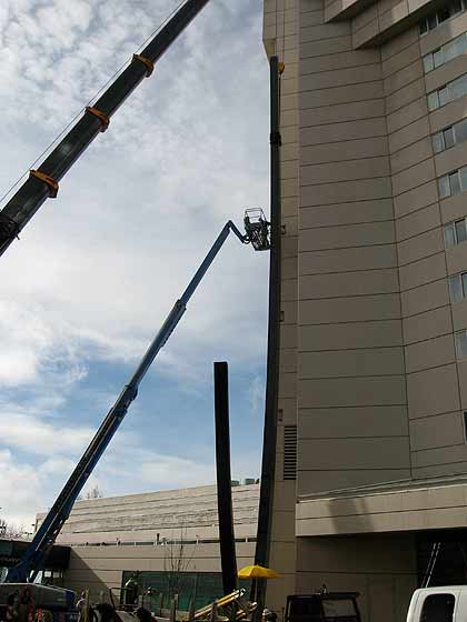 Tressie – As I was admiring it someone drove by and asked me “what is it” I told him it was a fishook but was quickly corrected by the people working on it. It’s to be a ladle. Apparently it will be filled w/ glass. The hotel likes to highlight something about the local scene. Glass is the local theme.