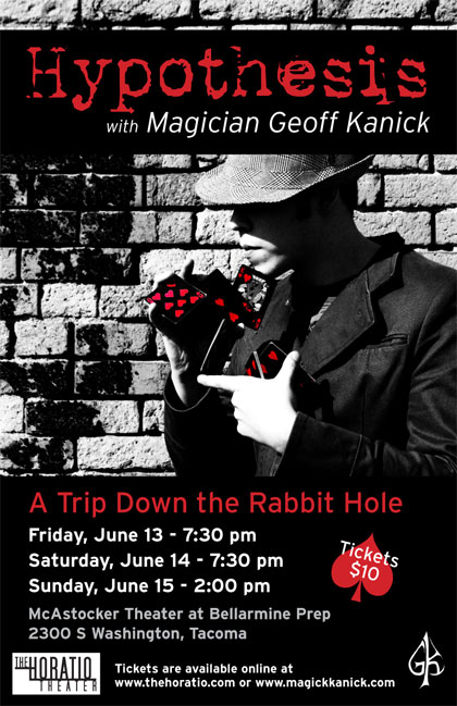 This weekend, check out the Horatio’s production of “Hypothesis,” a magic show featuring a local Tacoma magician named Geoff Kanick.