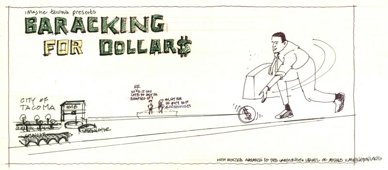 With the news this week that a bevy (gaggle?) of the Tacoma City Council were flying to DC in hopes of lobbying for Federal Funds from the incoming Obama Administration, it does get one thinking about what local public infrastructure priorities would be most appropriate to be recipients of our increased National Debt?