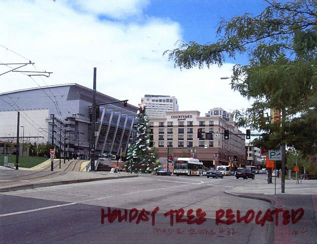 With the Festival of Trees right next door at the Convention Center, the bLINK whizzing past, and a large empty space completely devoid of signs of life, is there a better spot for locating a large and festively lighted tree as a symbol of enduring hope?