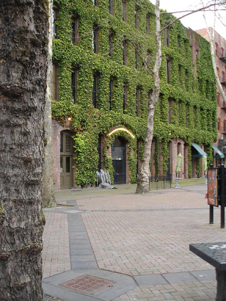 And Lowell may have a point about maintenance. The landscaping crews at University of Puget Sound do spend time each year using the lift to trim the vines away from doorways and windows to give it the neat effect shown in the picture above.