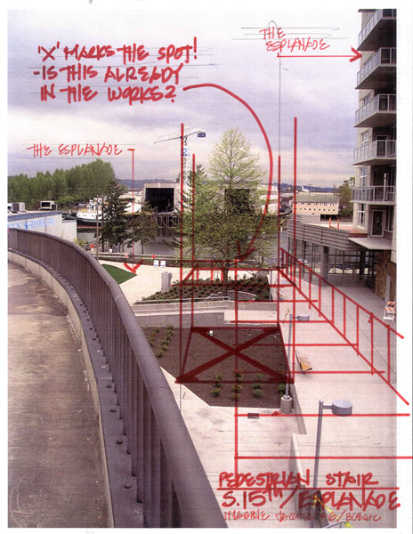 It this already in the works? There already seems to be a ‘block-out’ for extending the South 15th Street pedestrian route to a stair tower for access direct to the Foss Esplanade Walkway.