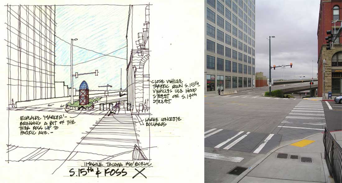 With the Tall Ships Festival approaching and the comments of Lars Gemzoe’s presentation to the Tacoma City Council about the lack of connection to our waterway still ringing in my ears, Imagine Tacoma project #6 revisits the connection of the Thea Foss Waterway to Pacific Avenue at South 15th Street and Hood Street.
