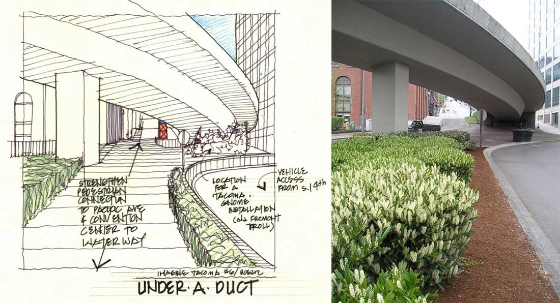 An artwork installation under the exit ramp for the Tacoma Gnome? Maybe hire the Jersey Devils to create another ‘Fremont Troll?’ I have heard that the Fire Department wants to keep the South 15th Street access from Pacific Avenue – but with an improved South 14th Street, maintaining access down Hood Street AND the new ‘East D Street Overpass’ nearing completion, the access is there – just not as incredibly convenient (seems I would have a greater concern with the LINK).