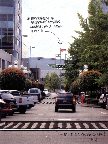 I’ve loved every bit of the Imagine Tacoma series, but the only thing I find agreeable here is that the convention center is an awkward way to end Broadway. and the paint the crosswalks and do something with that damn plaza.