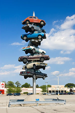 40 feet tall, 8 cars on the spike, featured in the 1992 film Wayne’s World. Who could ask for anything more? Opening bid is $50,000. Estimated shipping costs are $100,000.