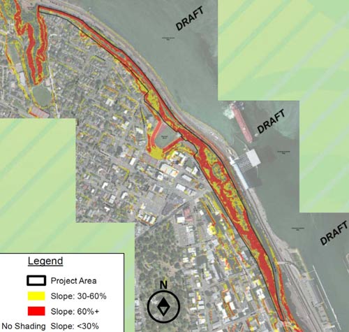 For decades the slope has largely been left in its natural state, but that has led to some issues with stability and safety. In order to have loose soil stay put, a piece of land must not have a slope of more than 67%. (That's rise over run, times 100, for anyone else who's a little fuzzy on their middle school math). More than half of the Schuster Slope project area has slopes of more than 60%.
