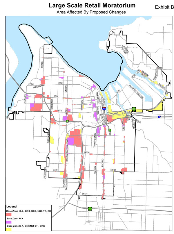 Details: See the public hearing notice (pdf), available from the City of Tacoma’s Large Scale Retail Moratorium page
