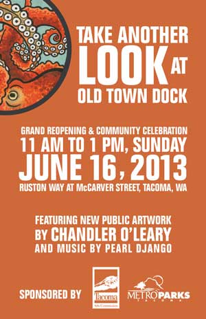 Entertainment: On Sunday, June 16, the City of Tacoma and Metro Parks invite you to celebrate the reopening of Old Town Dock with live music from Pearl Django and an interactive public art installation from Chandler O’Leary.