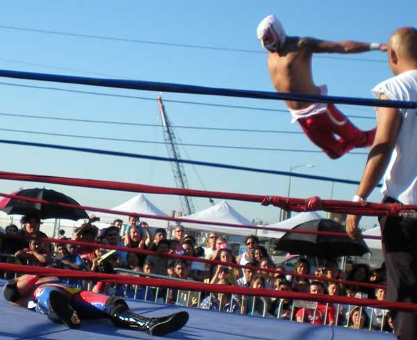 For those not familiar with lucha libre, a little poking around on the interwebs reveals that the sport, which translates as “free wrestling,” or “free fight,” is a particularly colorful version of professional wrestling. Masked Mexican “luchadores” … it just sounds like fun.