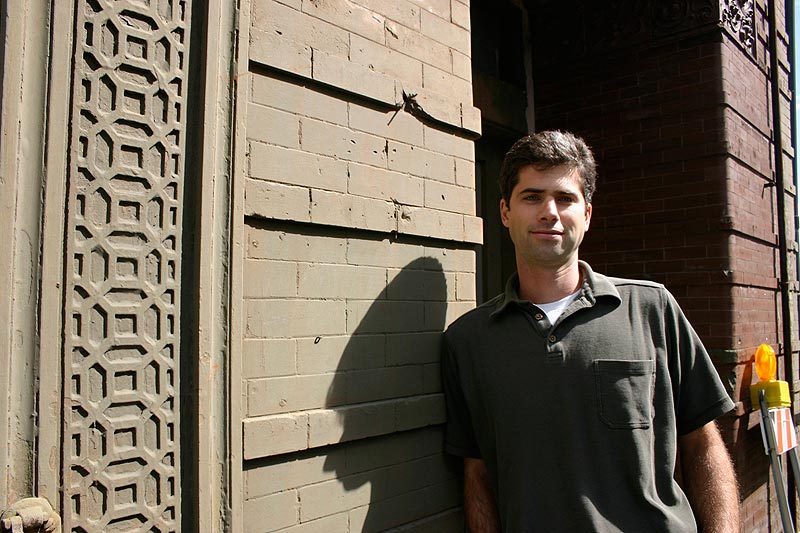 TIM LIEBERMAN: In this particular case, what makes it so unique is the integration of steel into the building structure. The bottom three floors have cast-iron columns, which is what you see here, and then it transitions into a fully wood structure upstairs. That building type allotted them to build taller than anyone else. For 1891, it was revolutionary. By the turn-of-the-century, it was commonplace. You saw buildings that were much taller than this one. They had much more integrated steel structure. This is a building that has a massive exterior brick wall. It’s massive. Unlike other buildings, rather than stepping back at each level, it is actually tiled. You’ve heard rumors the building is leaning. It’s not actually leaning. The brick is set at an angle.