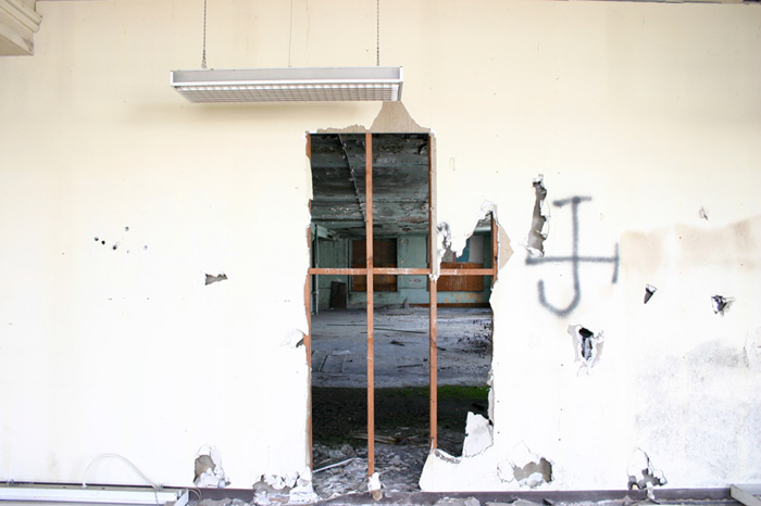 EXIT133: Being inside, we can see ceilings sag and can feel floors sink with each step. What is the extent of the damage to the building?