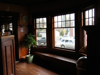 Exit133 took a field trip to the new coffee shop on McKinley Hill. We are pleased to report the place looks great. A couple of cute dogs waited for their owner outside. A line of eager customers inside. Plenty of windows let in the sunshine and friendly service created a neighborhood gathering place atmosphere. We particularly like the fireplace, built-in window seats, and the feeling like we’ve come into somebody’s home… ignoring the big espresso machine in the dining room, of course.