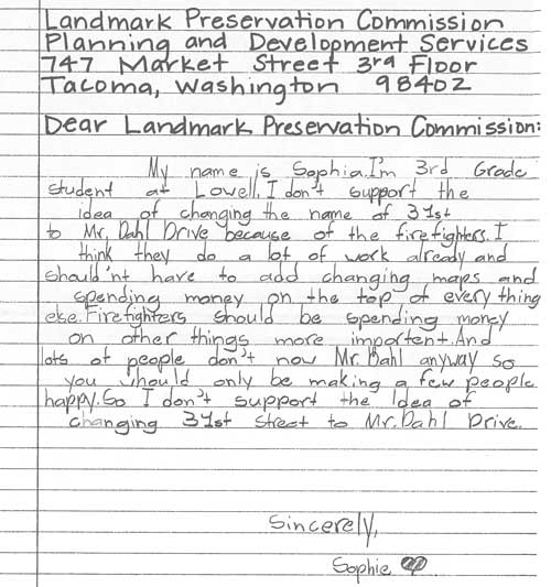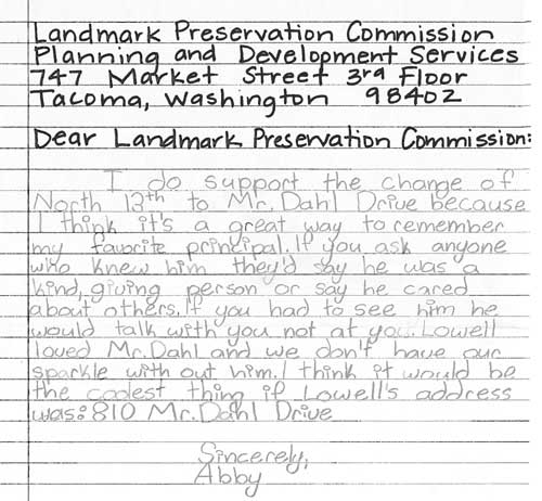 What’s really worth the look, however, and what we’ve been enjoying, is the involvement of the students of Lowell Elementary in the public process. A stack of letters and emails from the students of Lowell make arguments for (and a few against) the name change. The outcome of the renaming request will probably have very little impact on most Tacoma residents, but the involvement of the public process for these students is sure to be a great real world civics lesson.