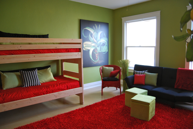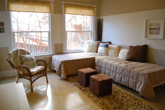 Each of the 22 apartments was adopted by a local designer, and each is completely unique. Karen Hirschman, who designed a two-bedroom unit with fellow designers Yvonne Leone and Athena Milan, said the designers all got so into the project, scouring yard sales, taking donations and putting up a hefty amount of cash themselves.