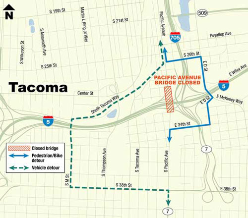 This September Pacific Avenue will be closed over I-5 to allow for the demolition and reconstruction of that bridge. That closure is expected to last about a year. The McKinley bridge is scheduled to follow in August of 2015, and remain closed for 18 months.