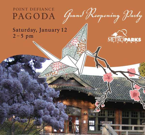 Built in 1914, the pagoda originally served as a station for Tacoma’s street car. It’s now an event space, with improved amenities. And this Saturday, January 12, it will be open to the public. Grand opening events will include presentations on the history of the pagoda, paper crane making, a limited-availability Japanese tea ceremony, and more.