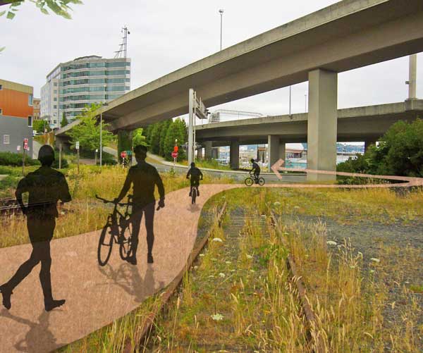 Tacoma has a $465,000 grant from the Puget Sound Regional Council to fund design and preliminary engineering work for the project to transform the former rail corridor on either side of UWT into a linear park featuring a bicycle and pedestrian-friendly trail. When the public design process wraps up this summer, the City will seek funding for construction.