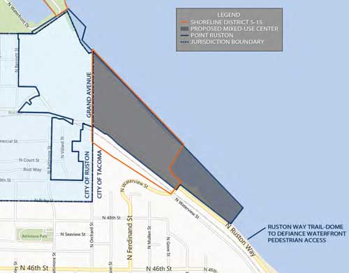 Point Ruston Mixed-Use Center - Designating a portion of the former ASARCO site as a Mixed-Use Center and residential target area (see map).