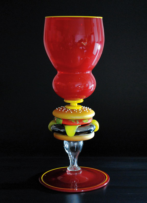 This one-of-a-kind event was inspired by a giant cheeseburger goblet (yes, you read that right). It’s one of the pieces created by John Miller for Gathering: John Miller and Friends, an exhibition featuring 25 super-sized Venetian-style goblets created by Miller with some of his colleagues.