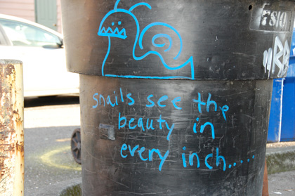December 8, 2008 · Whitney · archive: txp/article Snails Know... Filed under: Just-For-Fun 2 comments T Thorax O'Tool December 9, 2008 Snails may know, but Slugs will tell you how to profit from it. L lotac December 9, 2008 That is a quote from The Format… a great band! Tacomans have such impeccable taste in music.
