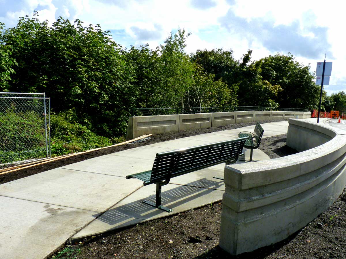 As a part of the pedestrian amenities included in the Stadium Way improvement project, overlook benches were installed to give pedestrians a place to stop, rest, and enjoy the view.