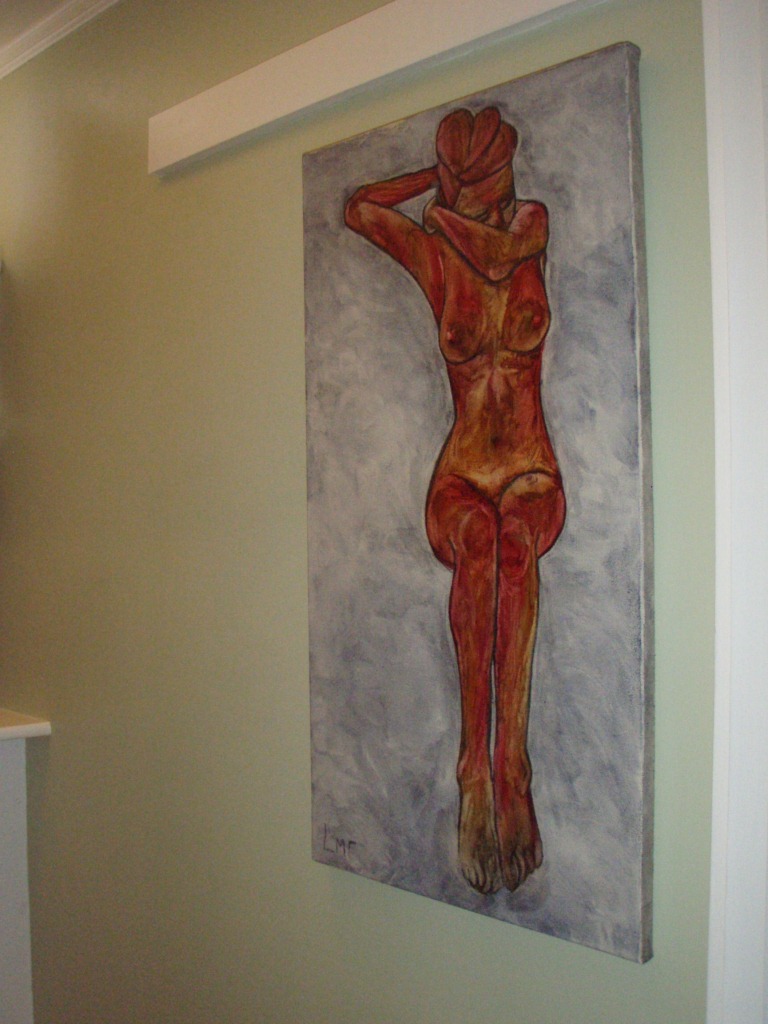 This is Faulkner’s first showing in a gallery since she graduated from University of Puget Sound with a concentration in painting, and her commitment to learning from process and exploration is clear. Says Faulkner: “In this series, I examine Schiele in terms of style. I combine some of Schiele’s most revered nudes with my own palette imbuing in the paintings a synthesis of Schiele’s and my own vision of the body. By emulating his style, I hope to gain further insight into his creative process, and to create work that reflects his artistic mastery.” While her work is as stylistically her own, traces of Schiele are evident in the exposure of the human body and poses that emulate loss, discovery and sexuality. In confronting eroticism, sexuality and Schiele, Faulkner sidesteps Schiele’s trademark eroticism, and instead imbues her subjects with serenity and modesty. In explicitly addressing and exploring female sexuality, the artist acknowledges her connection with the women she depicts.