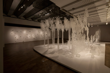 One of my favorite things about the Museum of Glass is that there, art is not only shown, but made. Glimmering Gone is uniquely MOG: the exhibition features new works formed through collaboration between artists Beth Lipman and Ingalena Klenell, including the works Artifact and Momento, both of which were produced during Lipman and Klenell’s MOG residency in January 2010. The exhibition also includes a large-scale installation, Landscape, that Lipman and Klenell collaborated on from their own studios in Wisconsin and Sweden respectively.