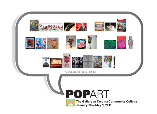 Excited to check out Post Pop/Pop Art at the Gallery at Tacoma Community College, I nervously scoped out what I assumed was the entrance, and felt the same bottled anticipation I feel when approaching a classroom door on the first day of class. I would anxiously prepare, hoping the class lives up to my brightest expectations.