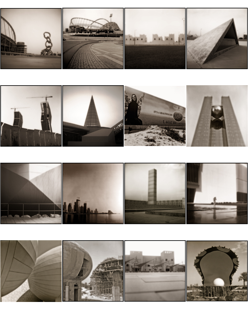 Giordano’s photographs gracefully steal the show. At first, they appear constructed, a series of miniatures manipulated to look like otherworldly cityscapes. In actuality, each photograph was taken during Giordano’s two-year stay in Doha, Qatar.