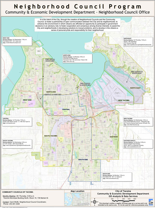 Last year the City of Tacoma's Neighborhood Council program underwent a comprehensive review. Recommendations coming out of that review would make adjustments to neighborhood Council boundaries in four locations, impacting five of the council boundaries.